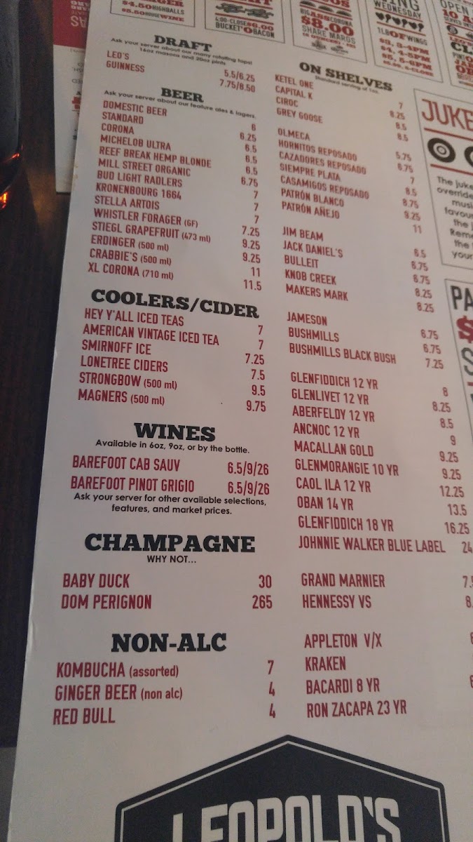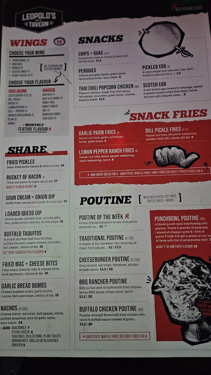 Leopold's Tavern Winnipeg - Osborne South Menu